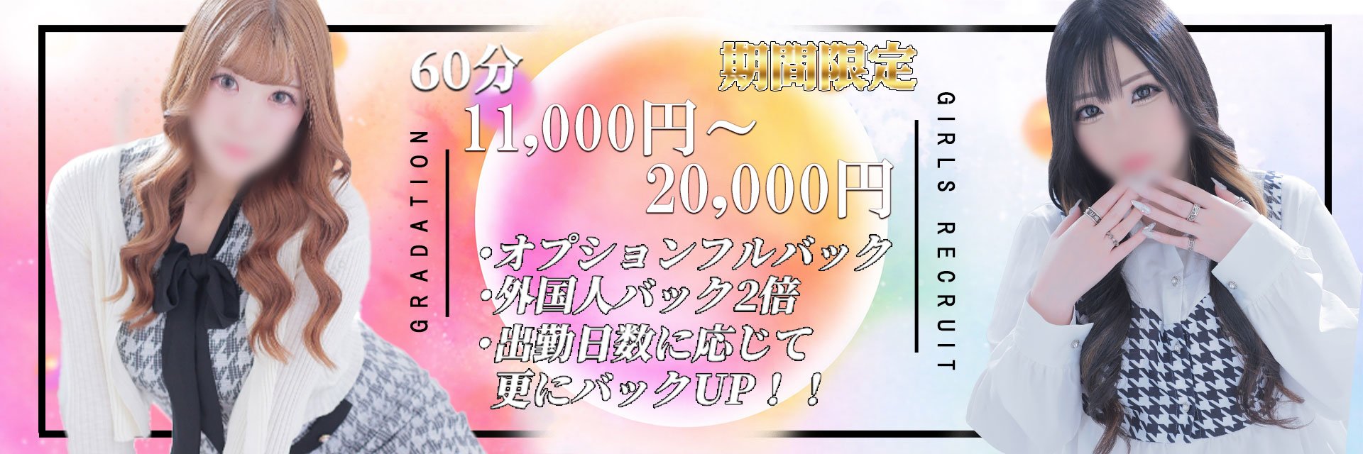 【嘘ナシ宣言!】新人期間は条件ナシ!60分11000円~以上可能!更に個人OP設定でコースバック20000円も可能!