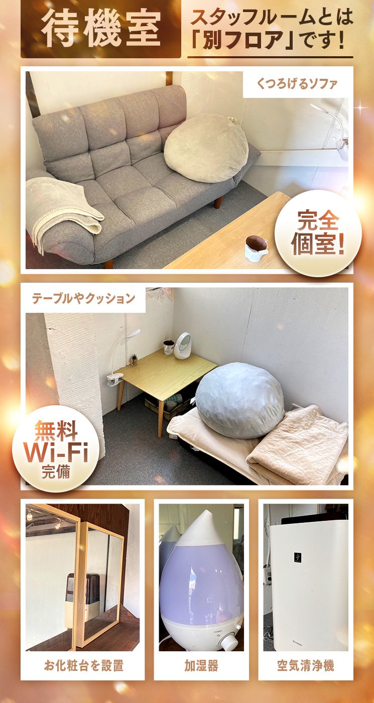 完全個室待機なので必ず1人に対し、1部屋ご用意いたします♪