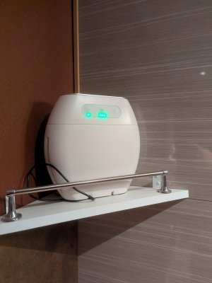 写真の「オゾン発生器」、当店の全ルームに設置しています。