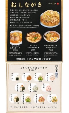 (二郎系、味噌、坦々メン、蒙古坦メン)