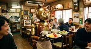 最近はあの某大型チェーン店のファミリーレストランでは、ネコ型ロボットが料理の配膳をしているらしいです。