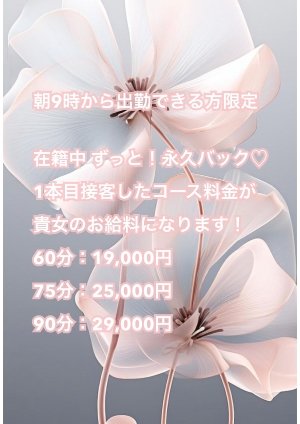 女性店長ですのでセクハラ一切ありません☺️貴女のお仕事やいろんな不安を私が全て受け止めます💪( ¨̮ 💪)貴女を最大限に活かせるゴールデンハンターで働いてみませんか?もっと今より稼ぎたい・予約は本指名ばかりで初めてのお客様からのご予約が鳴らない・顔出ししてないから予約が鳴らない・もっと売り出してほしい、頑張りたい女の子応援致します☺️お電話、メール、LINEでお気軽にお問い合わせください。安心してお仕事できますよう徹底したスタッフ指導に努めております。