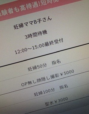 妊婦なので色々不安もありましたが、指入れも無いですしお客様も妊婦さんの事理解していただいてる方が多いので、安心して働けます。給与も一切引かれるものが無いので嬉しいです。