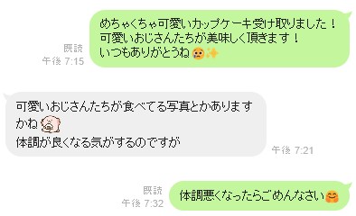 れおちゃんから激カワカップケーキを頂いたのですがとあるLINEが…