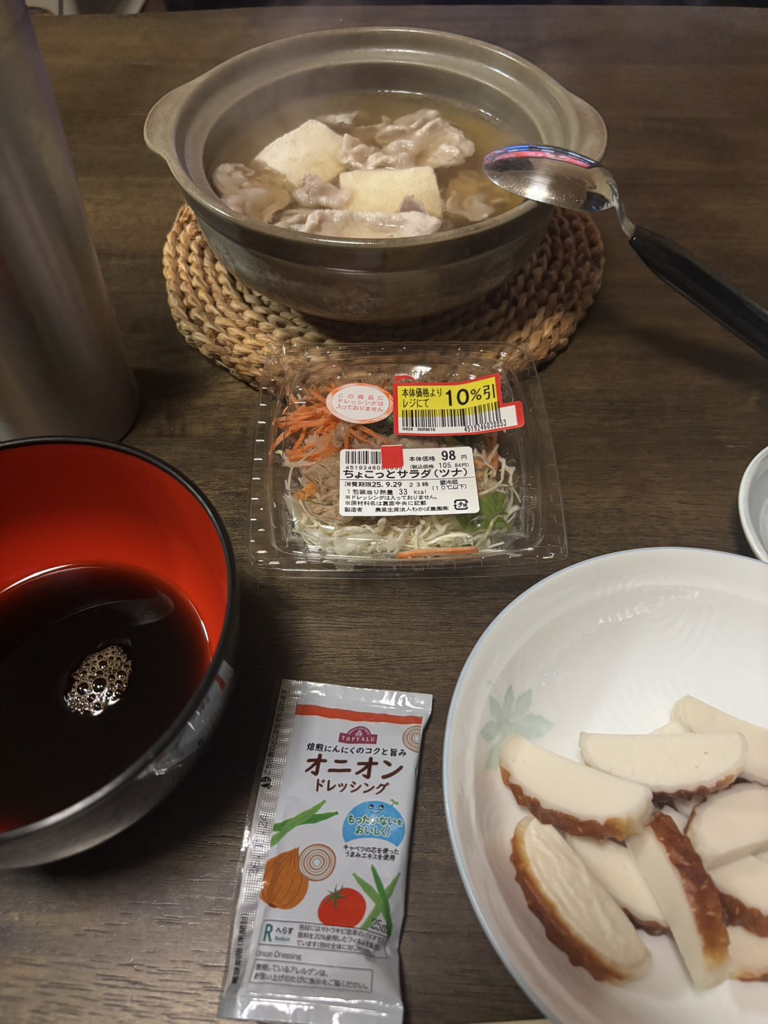 最後に、ええ歳こいた独身のおっさんの晩飯の写真でも。
