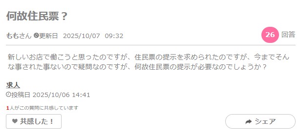 必ず住民票の提出を求められるお店=届出を出しているお店で
