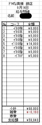 普段の出勤時間が6時間くらいのキャストさんの給料明細になるんですが