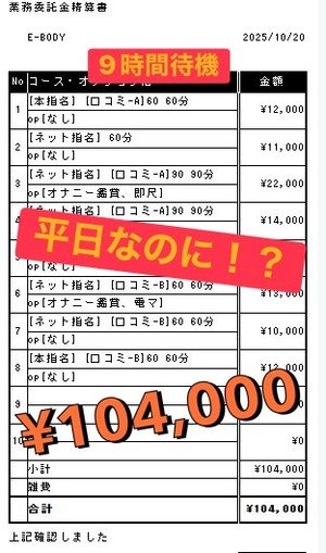 この日は【9時間勤務】で、なんと合計【¥104,000】を達成!!✨