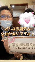 | A | 女性のプライベートを最重要視いたしますので、「顔だしNG」は当然、大丈夫です。ネットや雑誌だけでなく、お客様来店時に受付するお客様紹介用パネルも顔隠し可能です。また、ネット写真をNo Photoにする以外に、名前も掲載しないで在籍を完全に隠しての勤務も可能です。 |