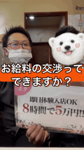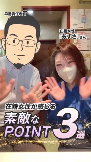 このお仕事の動機は…「接客業が好きだから…あとは、将来の為に貯金しておきたい。」との事です。週に5日のレギュラー出勤して頑張っています。
