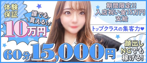 ◆女の子が受け取るお給料 60分12000円+指名料 一日体験保証 7万円も実施中! 当店で活躍する女の子のお給料事例も公開しちゃいます! ◆早番Kさんの場合 12時~18時 60分コース 2本 22,000円 45分コース 1本 9,000円 予約料金1本〜3本 2,000円〜6,000円 合計給与額 33,000円〜37,000円 ◆遅番Yさんの場合 17時〜24時 60分コース 2本 22,000円 45分コース 2本 18,000円 予約料金1本〜4本 2,000円〜8,000円 合計給与額 42,000円〜48,000円 ※雑費3,000円をあらかじめ差し引かせて頂いております。 給与シミュレーションはこちら |