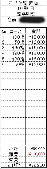 10/6(月)直近の女の子の【給料明細】大公開!!