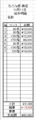 直近10/11(土) 【女の子の給料明細】大公開!!