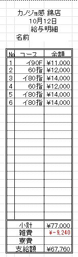 直近10/12(日) 【女の子の給料明細】大公開!!