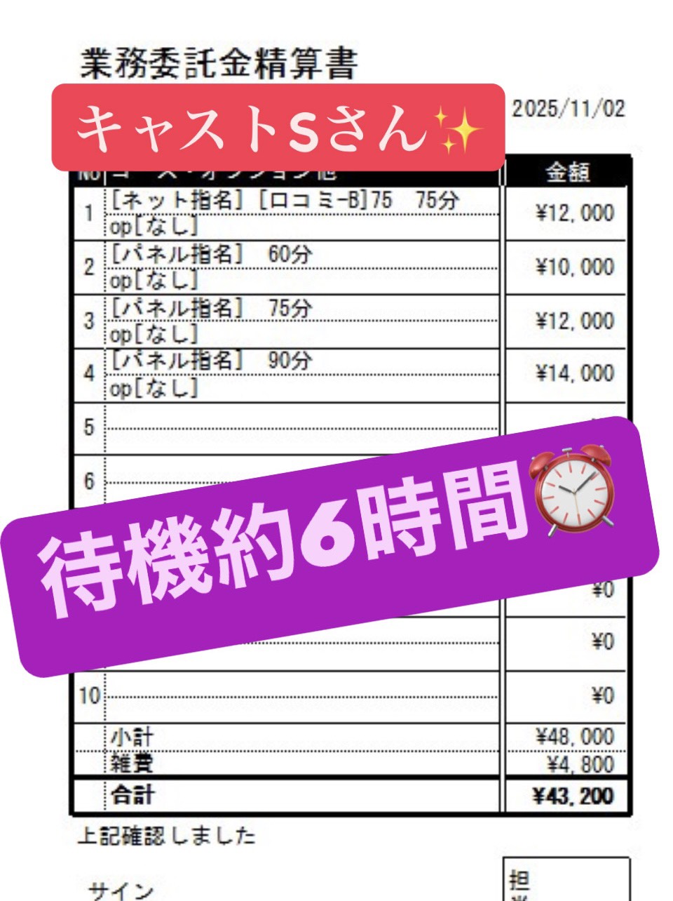 正直今まで本指名様を作るのも難しく予約もなかなか鳴らせませんでしたがスイートに入ってからは来店数が多くパネル指名だけでもとても稼ぐ事が出来ています!