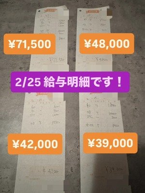 25日の女性キャストさんの 明細を紹介いたします(*^^*)