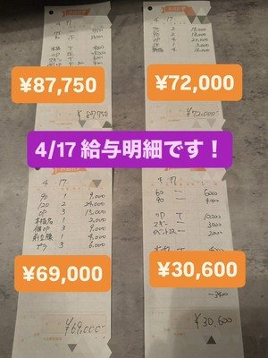 17日の女性キャストさんの 明細を紹介いたします(*^^*)