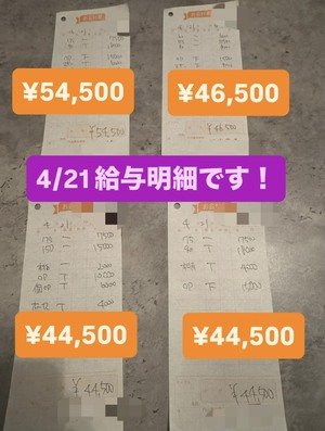 20日の女性キャストさんの 明細を紹介いたします(*^^*)