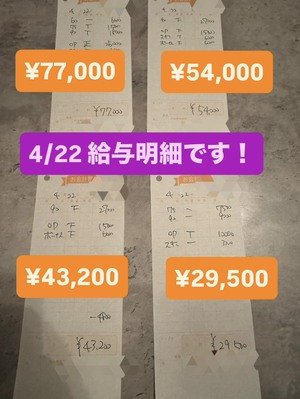 22日の女性キャストさんの 明細を紹介いたします(*^^*)