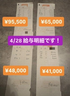 28日の女性キャストさんの 明細を紹介いたします(*^^*)