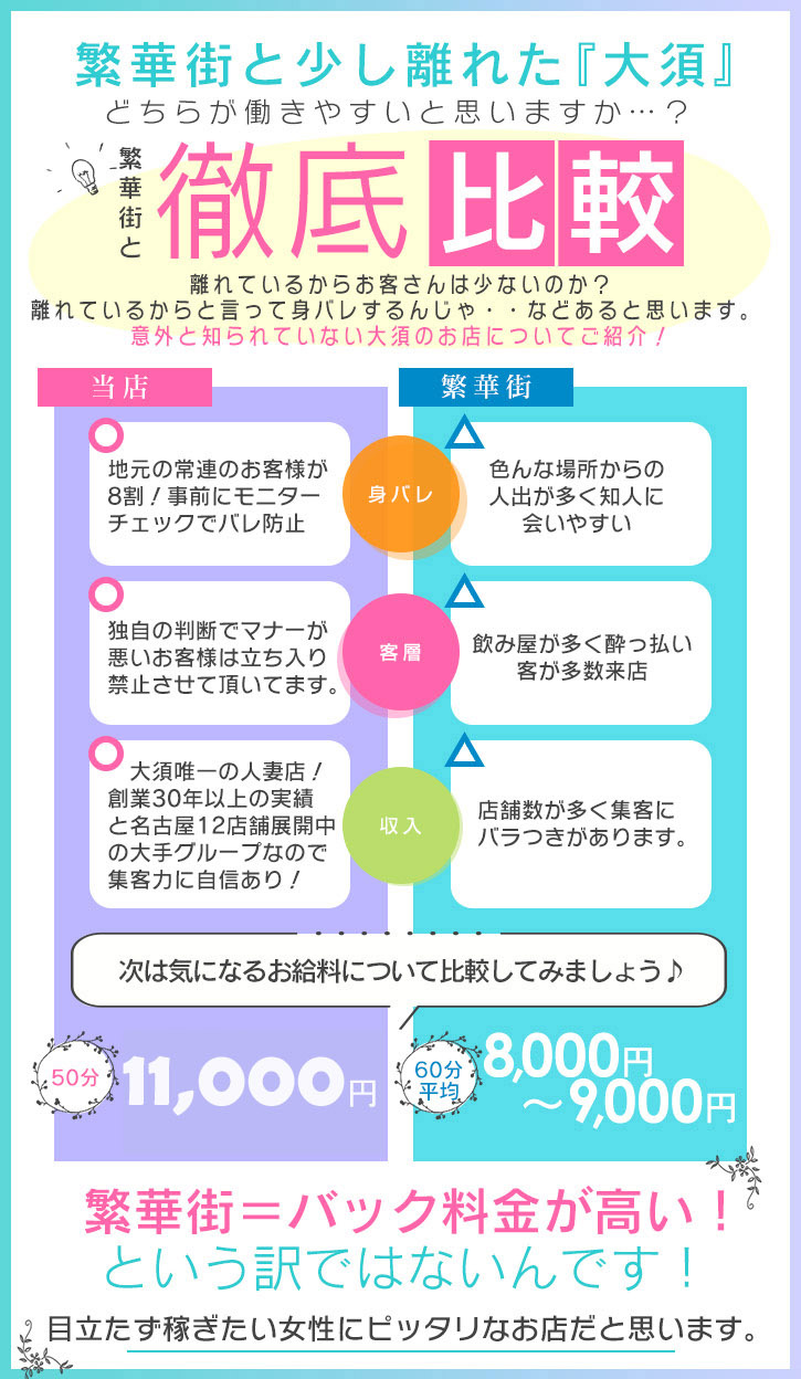初めてのお仕事でなかなか最初の一歩を踏み出せない方が、ほとんどいるかと思います。当店スタッフは1から丁寧にご指導させていただくことはもちろん、あなたがより働きやすい環境を作るために、できる限り要望に応えていきたいと思っております。未経験の方でも何も心配いりません。入店後すぐにでも安心した収入が得られ、だんだん慣れていく間には更に高収入が得ている方が大勢いらっしゃいます.ほんの少しの頑張りでOLさんの月収をたった1日で稼ぐ事が出来ます!貴女の理想の未来を思い描けるように頑張って下さい。