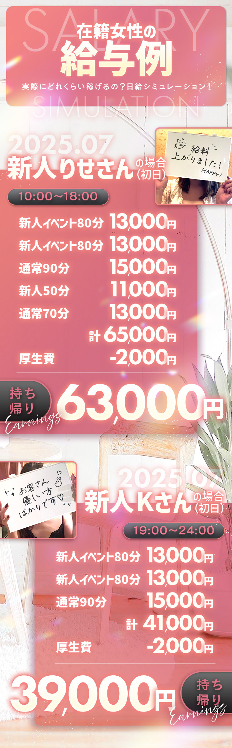 在籍女性の初任給🔰を実例公開!!保証もあるので閑散期があっても安心🎀