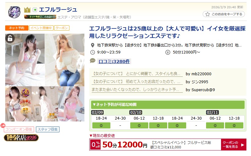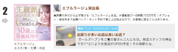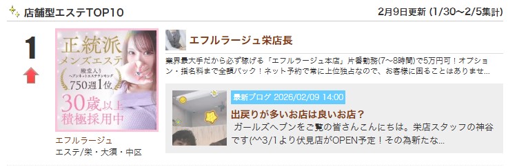 業界最大手だから必ず稼げる「エフルラージュ本店」片番勤務(7~8時間)で5万円可!