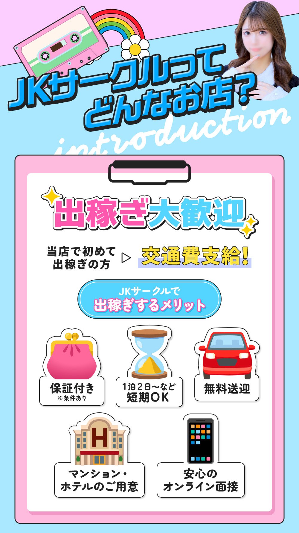 | A | 東海TOPクラスの人気のJKサークルは、 平日でも5万円は稼げます。 一番人気のキャストさんでは、一日10万円稼いでいる子もいらっしゃいます。 |