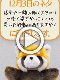 ↑↑動画をご覧ください↑↑ 12月3日のネタ 店長や一緒に働くスタッフの働く姿でかっこいいと思っ...