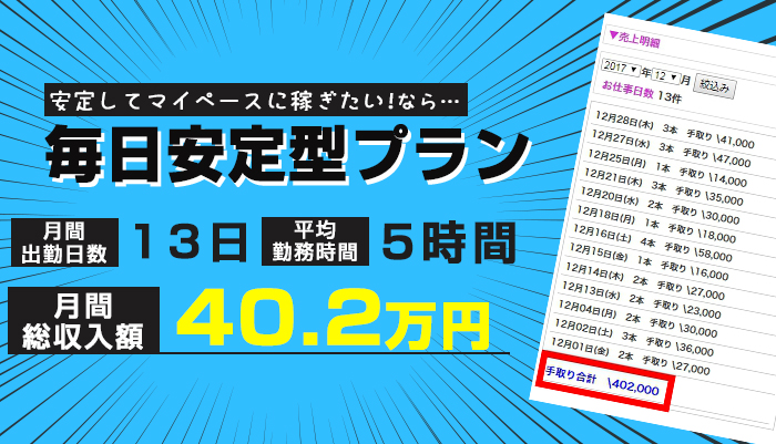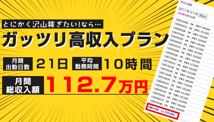 当店は高額バックのお店ではないですが、一日でのお給料単価では他店とは比べれない程に稼ぐ事ができます!