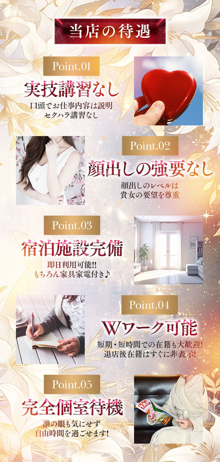 見学のみOK 体験入店OK 出張面接○ 写メ面接○ 採用率99% 入店特典あり 自由出勤 週1~2日 週3~4日 週5日以上 土日のみOK 1日2時間 バック率60%以上 送りあり 迎えあり 駅から徒歩5分以内 駅から徒歩10分以内 講習なし 衛生対策あり 生理休暇 寮完備 託児所完備 託児所紹介可能 事前モニターチェック可能 個室待機 即日勤務OK 未経験者歓迎 妊娠線・手術痕OK ドMな方 巨乳 貧乳 タトゥーOK 20代前半 20代後半 30代前半 30代後半 40代 細身の方 ぽっちゃりの方