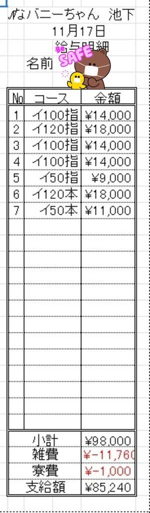【池下バニー 給料明細大公開】