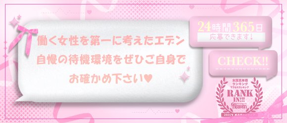 ・edenをご利用するご新規のお客様のリピート率が80%を超えるため、新人女性でもスグに稼げます!