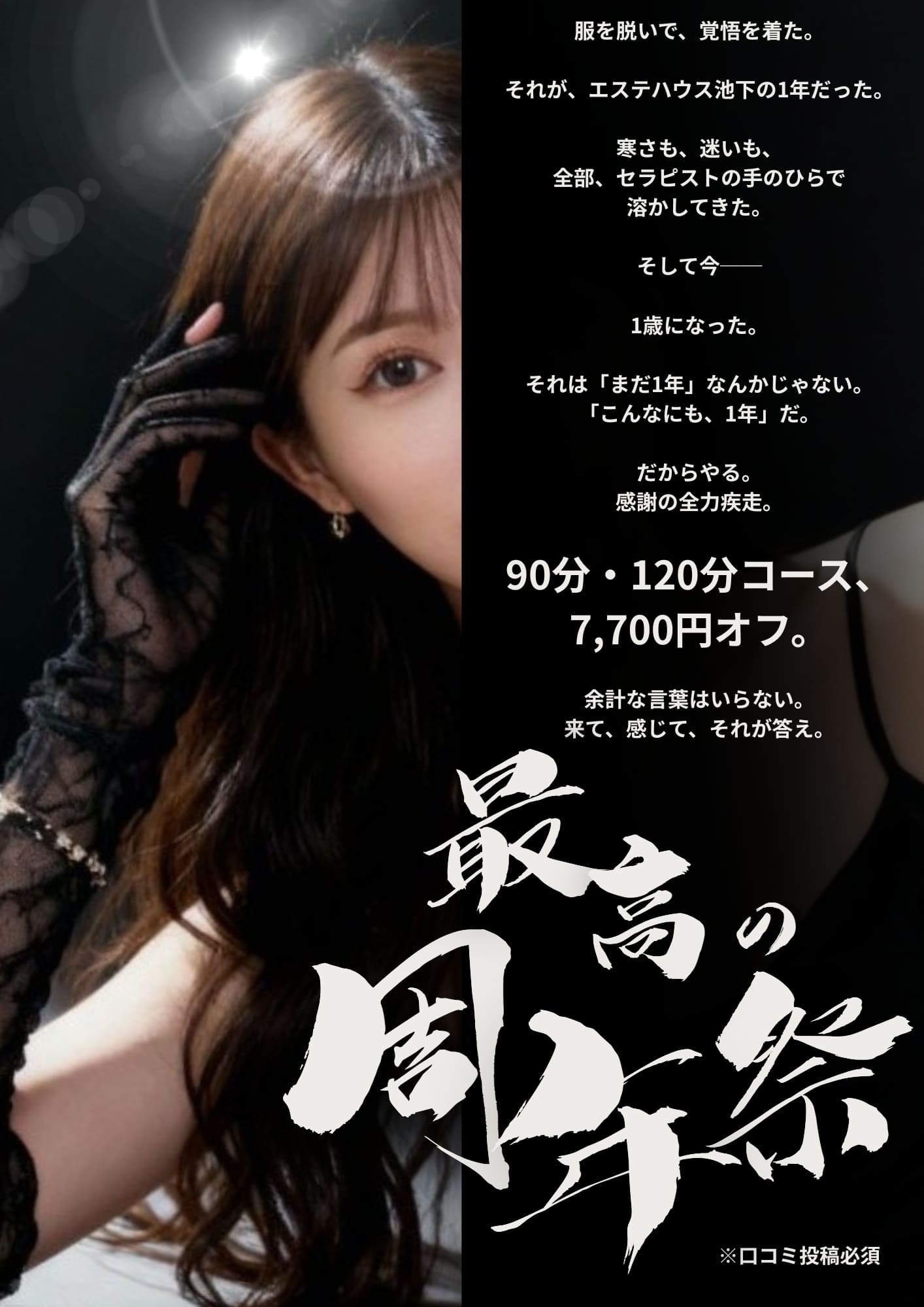 【最高の周年祭開催!】90分・120分コース、 7700円オフ!「まだ1年」なんかじゃない。 「こんなにも、1年」だ!