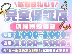 【体験保証】 ★完全永久保証★※体験保証※ ◇12時間受付 60,000円 ◇10時間受付 50,000円 ◇ 8時間受付 40,000円 ◇ 6時間受付 30,000円 ◇ 3時間受付 15,000円 ◎顔出しNGでも保証あります♪ |