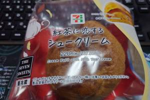 セブンの紅茶に恋するシュークリーム!紅茶のクラッシュゼリーがクリームの中に入っていて、