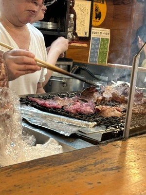厚切り牛タンが宙を舞って焼き網にダイブ