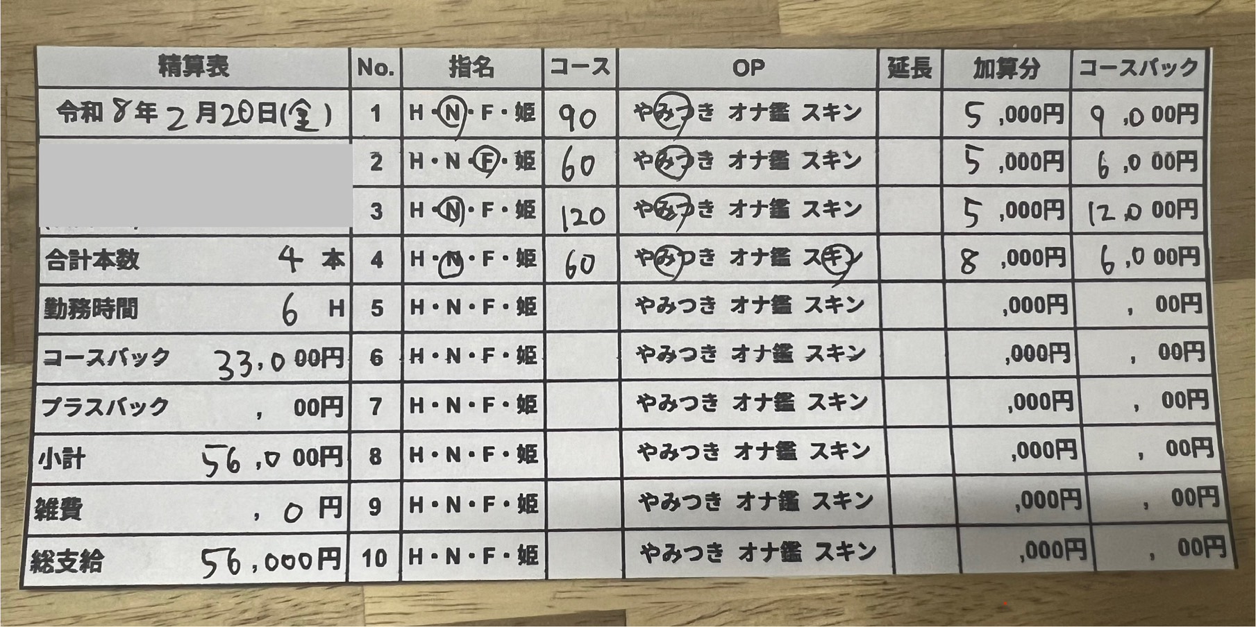 とあるキャストの夕食と本日稼ぎについて