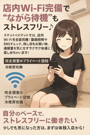 完全個室待機で他の女の子と顔を合わせなくて済む環境づくりや、