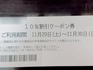 よく行く近所のスーパーで先日買い物をした際に、週末に使える10%OFFのクーポンが発券されました♪