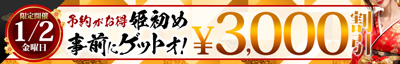 特に2日に関しては、事前割3000円で新年をお迎えいたしますので、ぜひ姫納め・姫初めは柏花壇でよろしくお願いいたします。