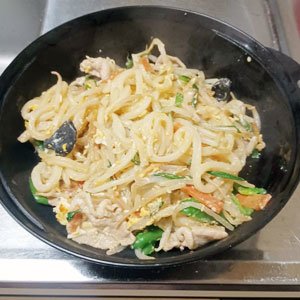 いつもパスタばかりですので、今回は和風の焼うどんにしてみました♪