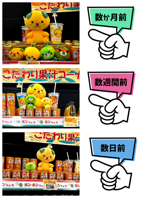 元々5匹だった「みきゃんファミリー」のぬいぐるみが3匹になってるってことを書いたんだけど…