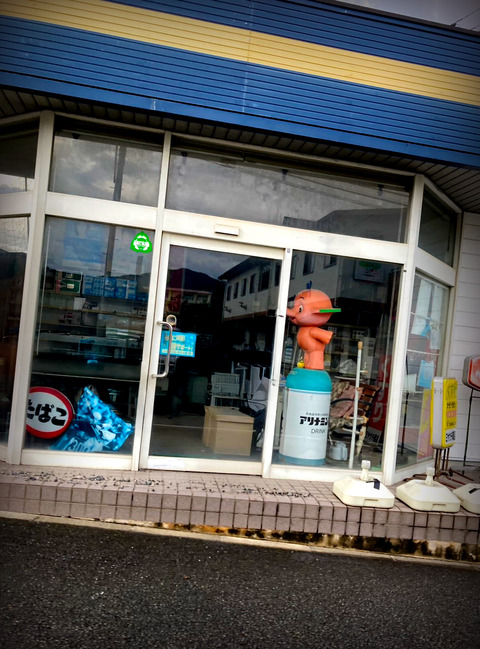 薄暗い店内にひとりきりで立っているサトちゃんは寂しげで