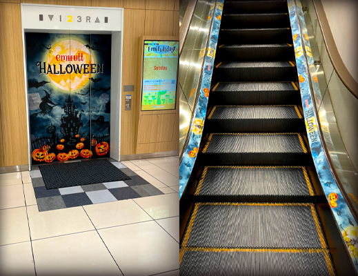 エレベーター&エスカレーターまでしっかりハロウィン仕様🎃 ↓