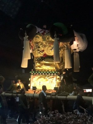 送迎中に見えた太鼓台の灯りが、夜空に映えてとっても綺麗でした。