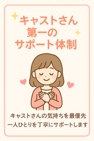 お店の名前や、実際のお仕事内容を見ると【難しそう】に感じるかもしれませんが、手厚いサポート体制が整っているので、未経験の方でもお仕事の継続率がとても高いです!!☆★