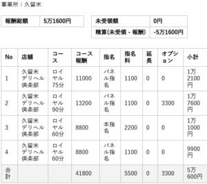 入店歴:半年くらい勤務時間:平均6時間/朝より勤務日数:週2-4日程月収:50万以上お昼の仕事をしながら掛け持ちで働いています。シフトもスタッフさんと考えながら無理なく組んでいます!昼職のみのときと比べて、3倍以上頂いているのでプライベートも充実した生活を送れています。
