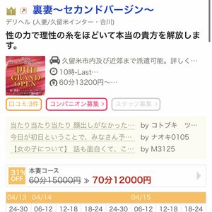 | 店舗名 | 裏妻~セカンドバージン~ | |