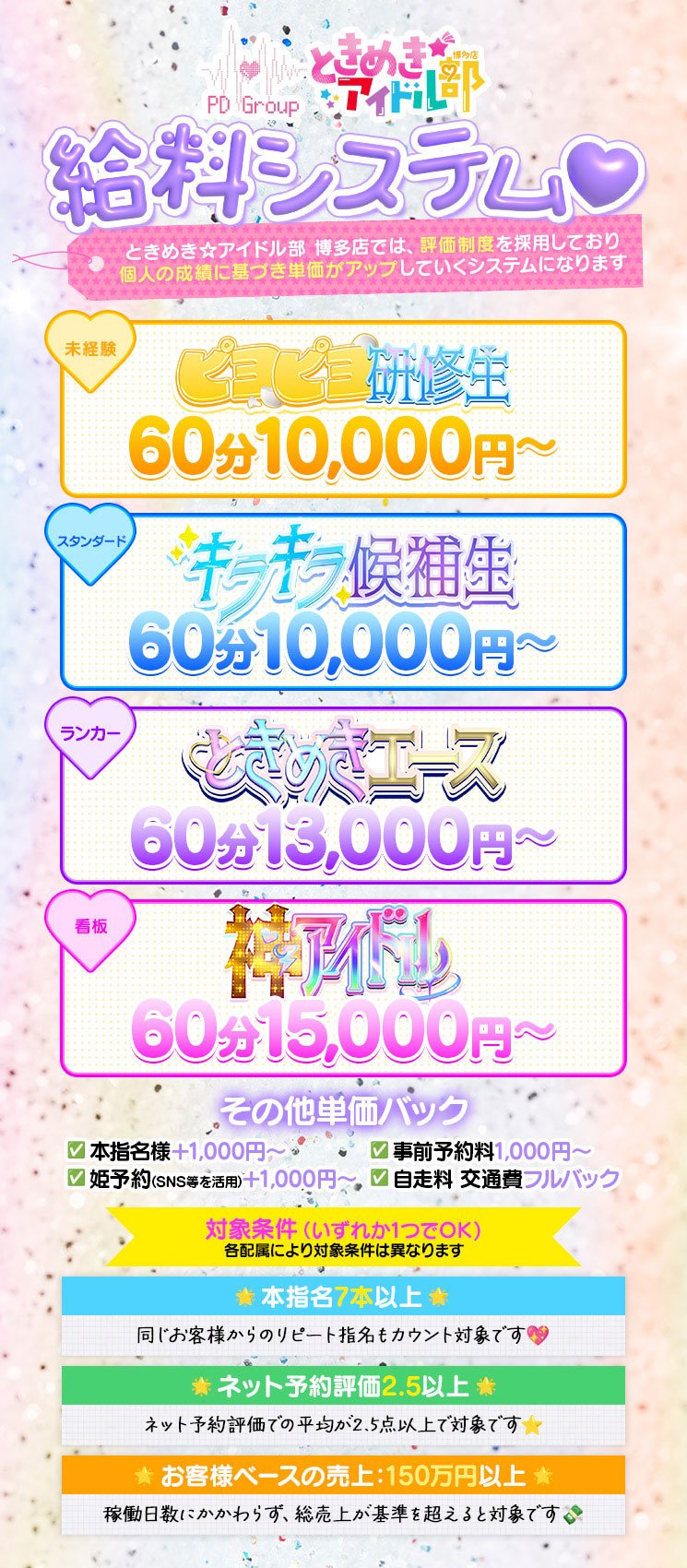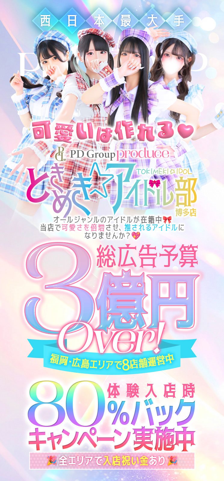ときめき☆アイドル部 博多店は、PD Group2店舗目のデリヘル挑戦として、グループ全体の経験とノウハウをフル活用し、働きやすさと稼ぎやすさを両立したお店です💡
